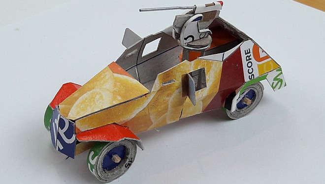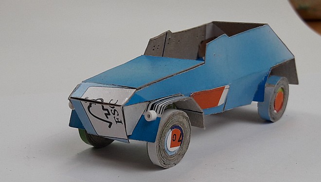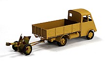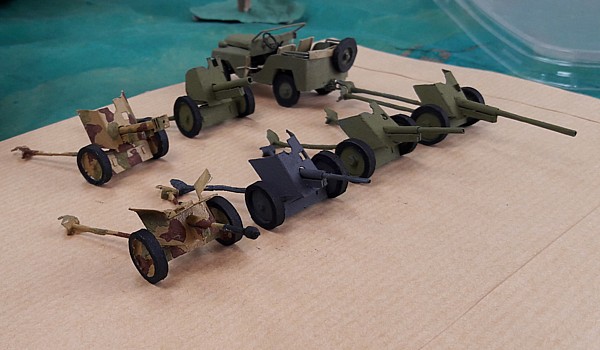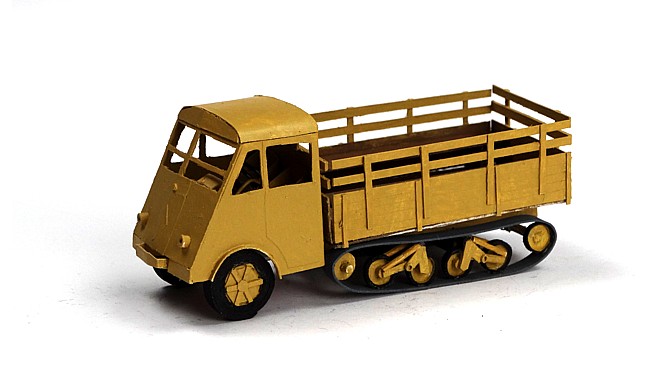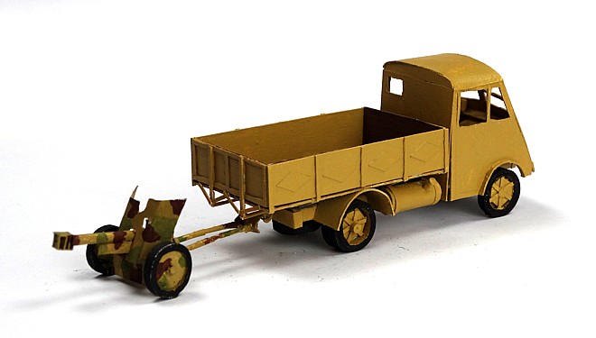At first the idea was to develop the Morris CS8 light truck, which could carry the 2-pounder antitank gun in portée. While I had to postpone the development of the too complex 2-pounder, the idea to leave space for the axle in glueing layers of cardboard was taken from the radio development and applied to the Pak 36 antitank gun instead.